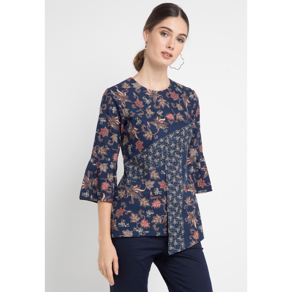 Arjuna Weda Blouse Batik Wulu Daun - Biru | Shopee Indonesia