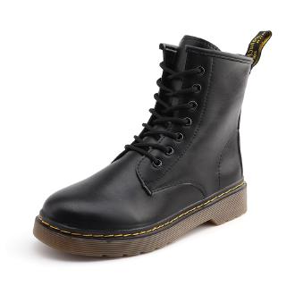 Sepatu Boots Martin Wanita Model Lace-up Flat Warna Hitam