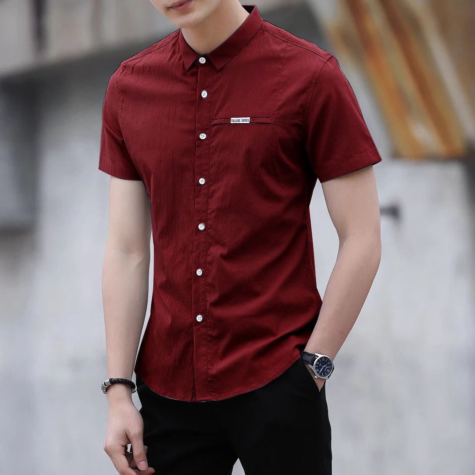 Jual Kemeja Pria Polos Lengan Pendek Cowok Slimfit Formal
