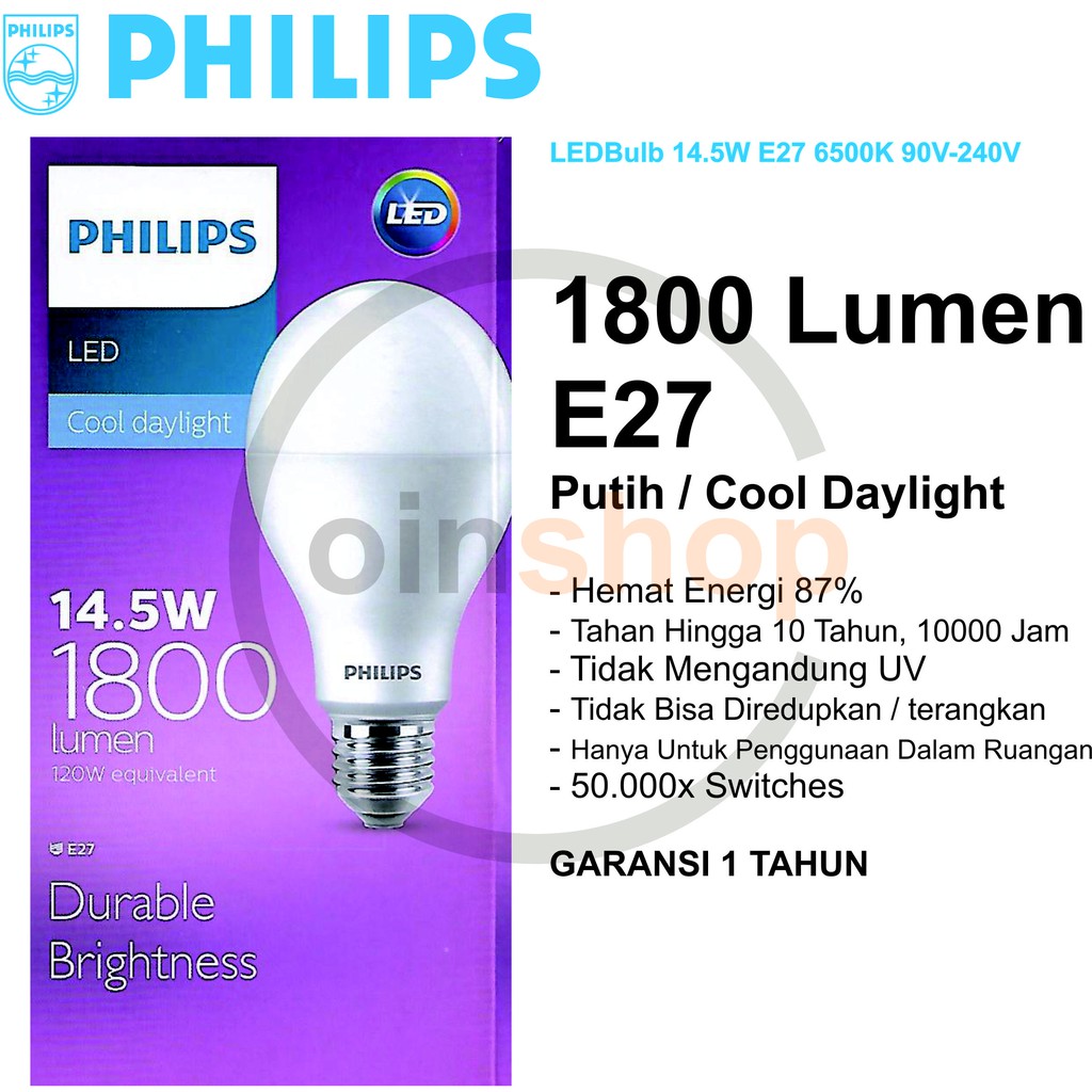 Jual Philips Led 14.5 Watt Lampu Bohlam Philips 15.5 Watt - Jakarta