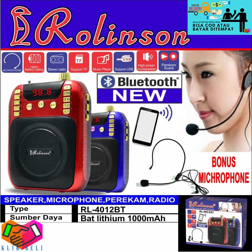 Rolinson Speaker Bluetooth Radio MP3 Mic USB Perekam Suara RL-4012BT